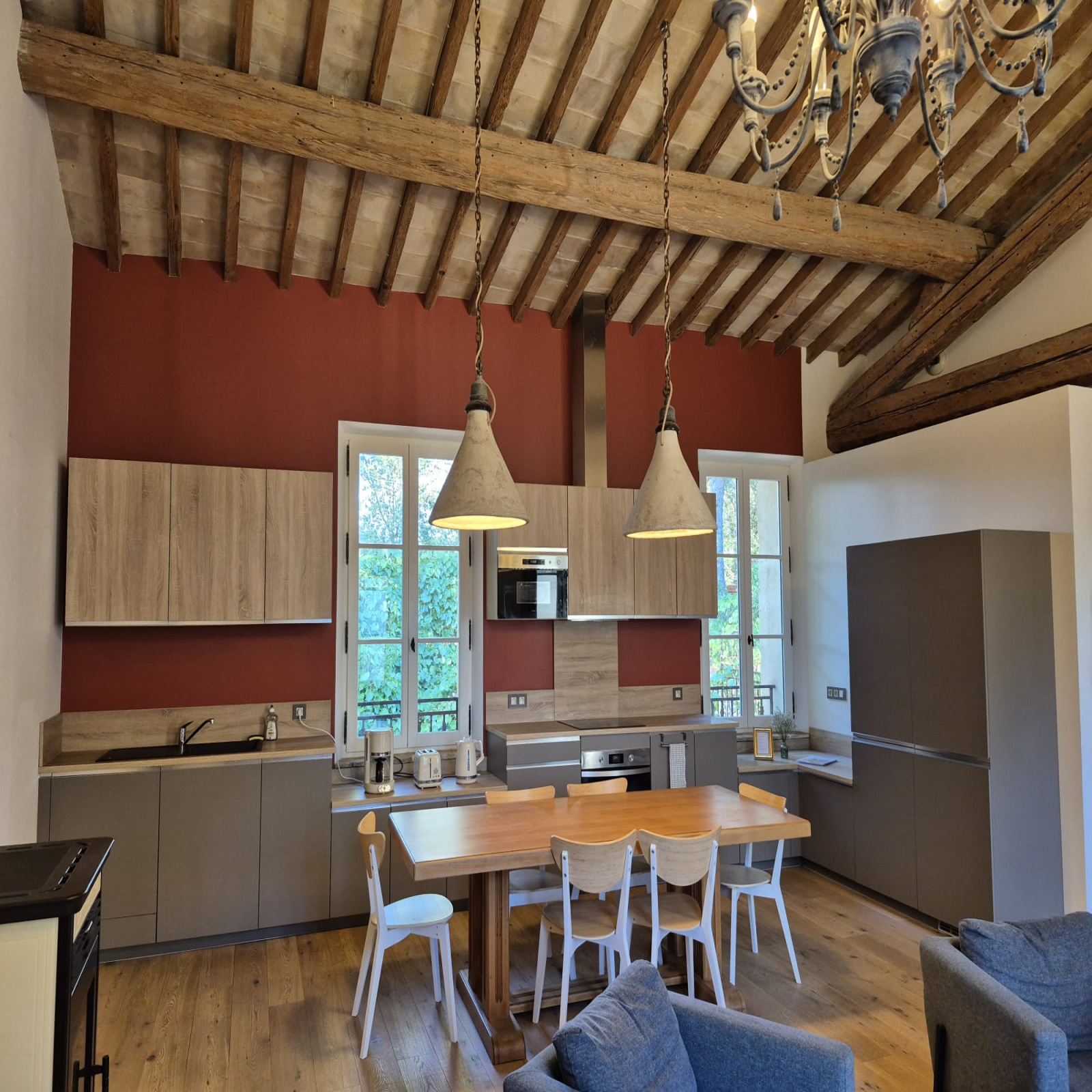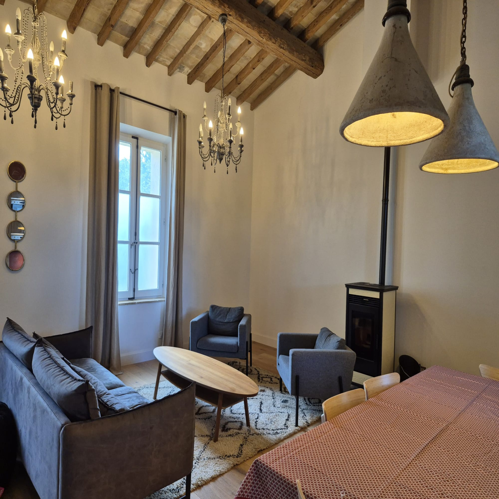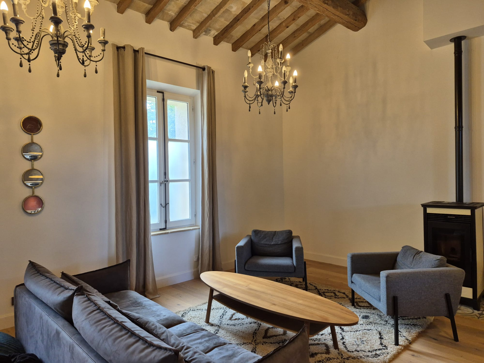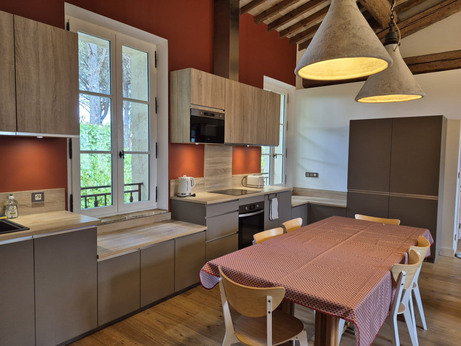 Dans un mas rénové en 2019, superbe appartement F4 meublé, découvrez ce magnifique appartement de type 4 de 118 m², situé en rez-de-chaussée, alliant confort moderne et cadre authentique.