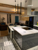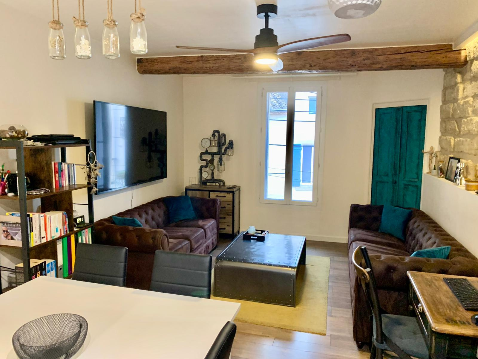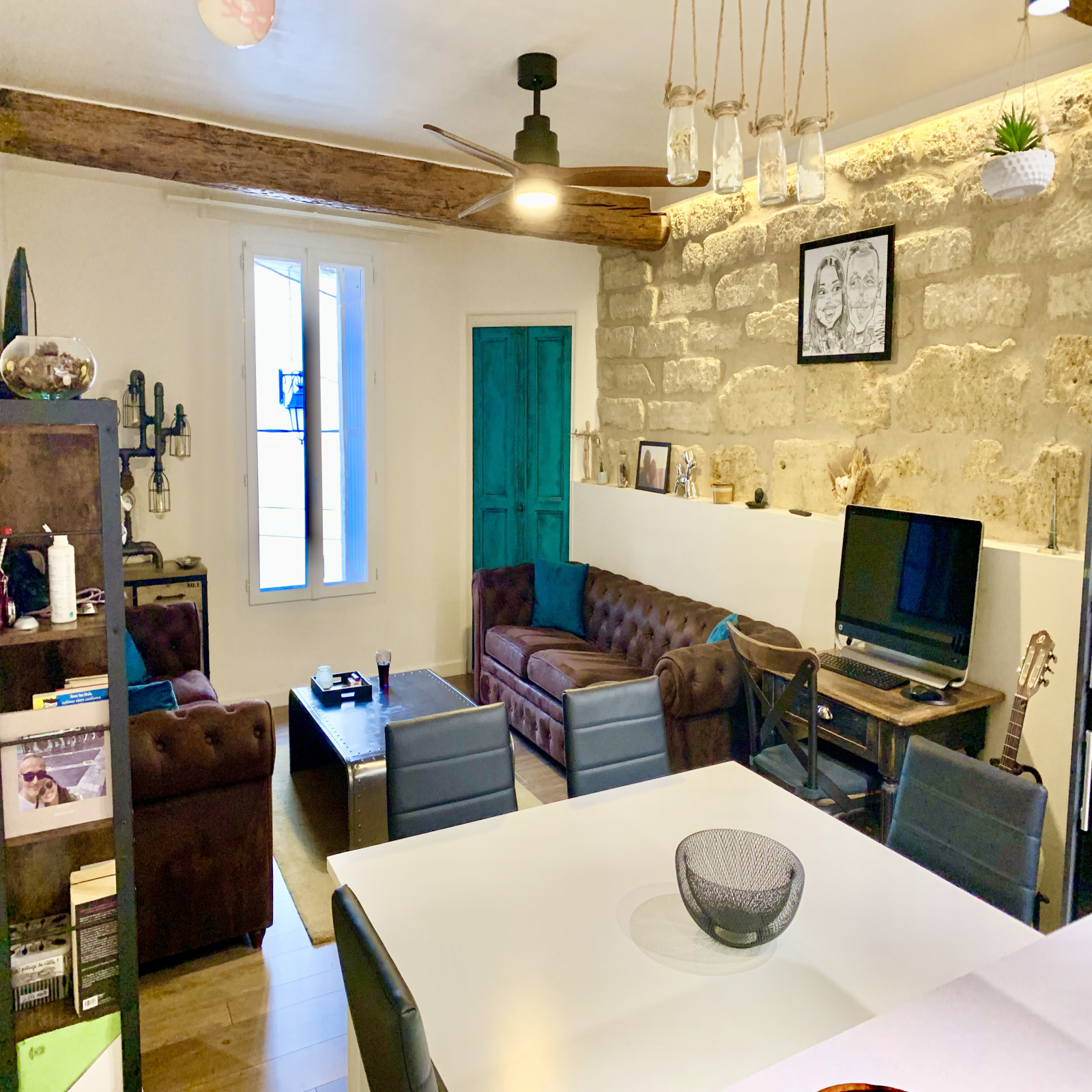 Belle maison de village F2 rénovée avec gout, offrant 60 m² habitables et garage. À rez-de-chaussée, entrée, toilettes indépendants, garage et buanderie. Au premier étage, séjour avec cuisine ouverte et équipée, patio fermé ; au deuxième étage, suite parentale avec chambre, dressing, salle d’eau et toilettes.