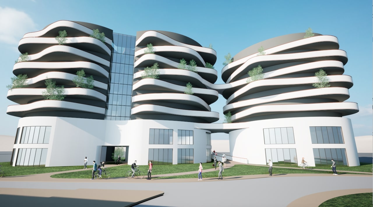 Le premier bâtiment, en photo ci-dessus, sera situé en face du Prado Concorde à l'entrée de la ville depuis Montpellier. Il s'agira d'un bâtiment de 70 logements conçu par l'architecte Jean-Michel Wilmotte.