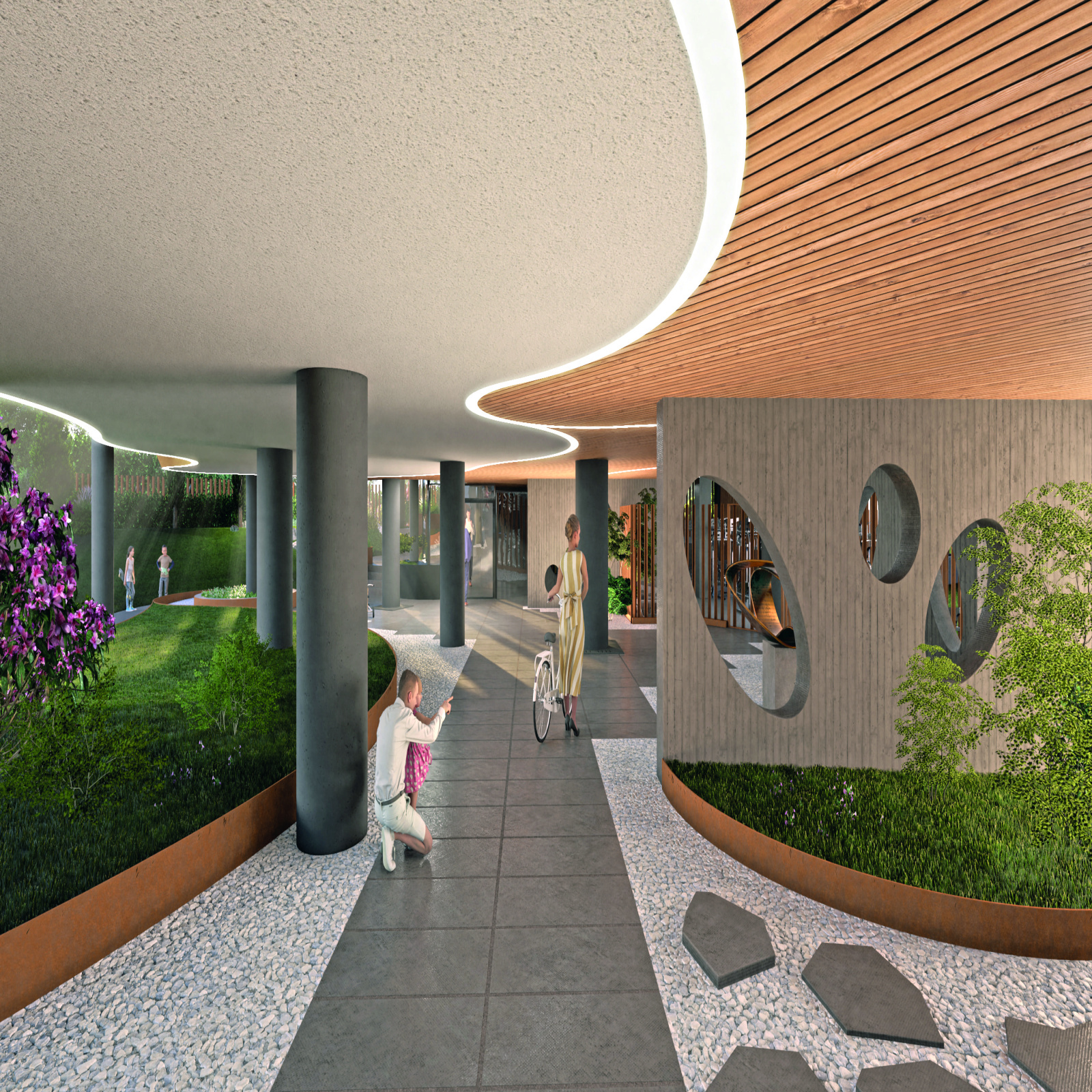 L'aménagement paysager de la résidence s'inspire de la douceur et du raffinement des jardins japonais. Le hall d'entrée est doté de mobilier urbain, il offre des espaces de repos et de rencontres aux habitants. Des facilités telles qu'un atelier de réparation de vélos, une ressourcerie, et un kiosque à livres sont intégrées dans les parties communes pour favoriser le bien-vivre ensemble.