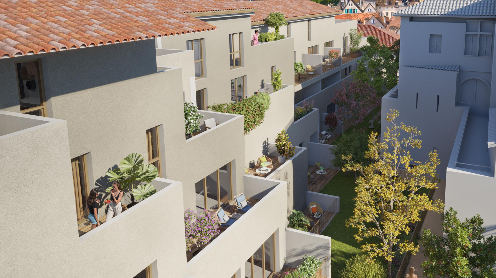 Implantée dans le cœur ancien de la ville, la résidence propose une nouvelle façon d’habiter la ville, en conciliant vie urbaine et ouverture sur la nature.