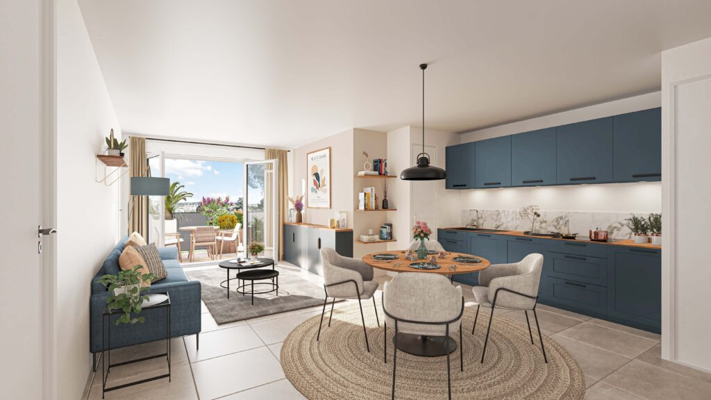 La résidence propose des appartements du 2 au 3 pièces fonctionnels et lumineux. Les logements bénéficient de larges ouvertures et d’un espace extérieur privatif : loggia, balcon ou jardin. Certains appartements de 3 pièces offrent une double orientation, optimisant ainsi la ventilation naturelle et le confort thermique.