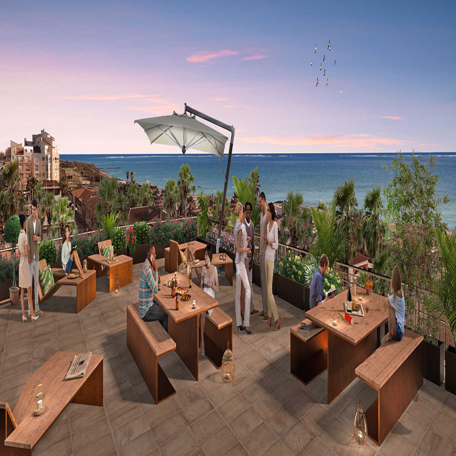 Une résidence balnéaire par excellence. Entièrement climatisée, la résidence dévoile ses atouts : se rendre à la plage à pieds, se garer au bas de la résidence dans un parking sécurisé, s'allonger sur un transat du rooftop et regarder vers le large, se baigner dans l'une des trois piscines en copropriété.