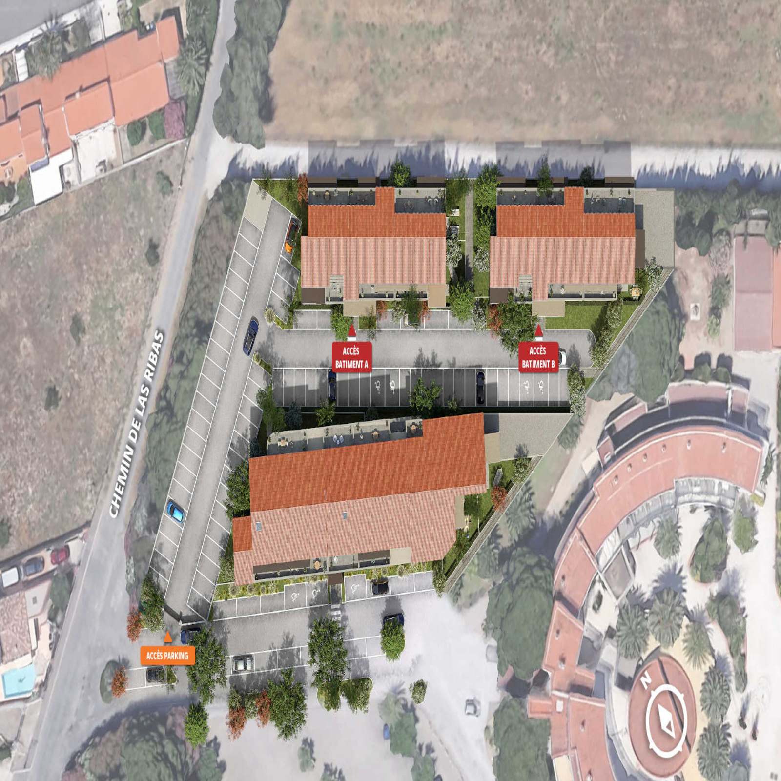 Située chemin de Las Ribas, dans un environnement calme et verdoyant à proximité immédiate des écoles, commerces et services, cette réalisation contemporaine s’intègre harmonieusement dans le tissu villageois.