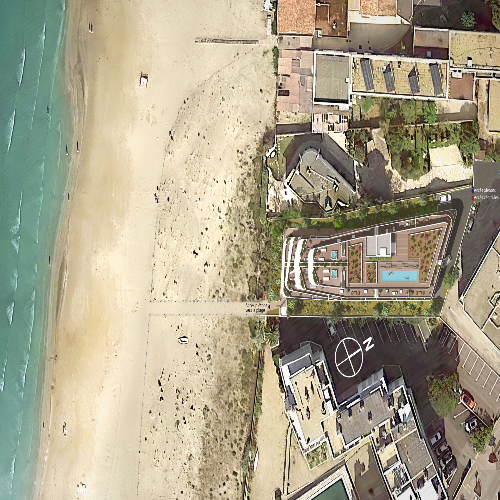 Bienvenue dans cette résidence exceptionnelle. Au 4e étage, un espace envoûtant avec solariums privés et piscine commune vous attend. Idéal pour profiter du soleil, nager et admirer le coucher de soleil. Une terrasse boisée entourée d'un paysage soigné offre piscine et chaises longues avec vue sur l'horizon marin.