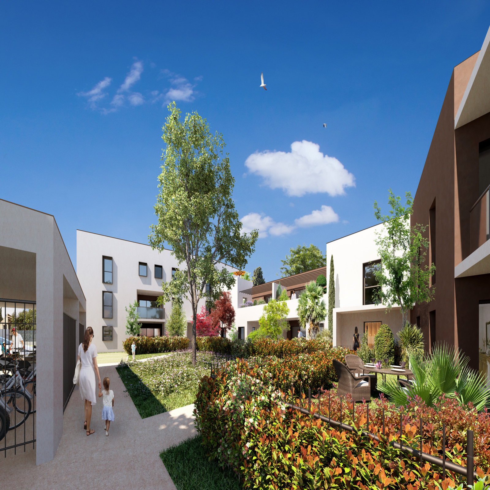 La résidence compte 58 logements répartis dans 2 petits bâtiments d'1 et 2 étages. Elle propose des appartements allant du T2 au T4, tous dotés d'une terrasse, parfois en duplex. Certains bénéficient de jardins privatifs en prolongement de la terrasse. Des parkings privatifs et un local à vélos sont mis à la disposition des résidents. Les logements sont très bien équipés, assurant un confort de vie essentiel au quotidien : carrelage au sol 45 x 45 cm, choix de coloris parmi une sélection, salle de bains meublée avec sèche-serviettes et choix du coloris pour la faïence murale, volets roulants électriques, peinture murale lisse blanche, cuisine aménagée pour les logements T2 et T3, chambre avec placard aménagé, séjour climatisé et conformité à la classe énergétique RE 2020.