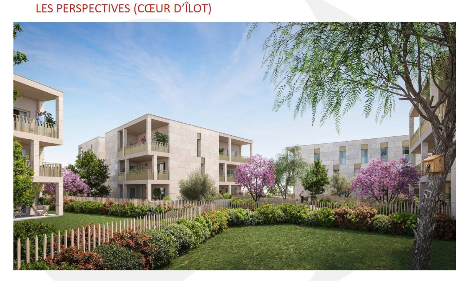 La résidence est l'histoire d'un équilibre harmonieux entre le minéral et le végétal. Dans une atmosphère intime, ces deux éléments se répondent, créant de vastes espaces aérés. La résidence se compose de cinq bâtiments habillés de pierre calcaire sobre et élégante. De taille modeste, chaque bâtiment abrite une dizaine de logements répartis sur 3 niveaux, avec pour objectif de privilégier la luminosité, le confort et le bien-être. La résidence propose des appartements allant du T2 au T4, tous conçus pour offrir une qualité de vie idéale grâce à des espaces intérieurs très spacieux, une double exposition ainsi que des terrasses abritées ou des jardins privatifs.