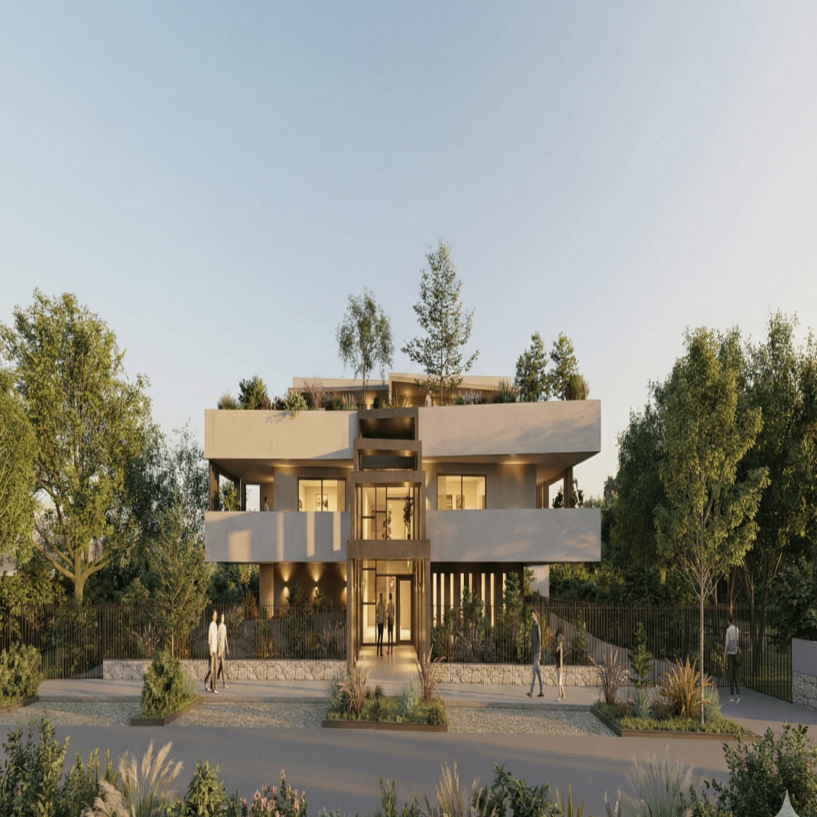 La résidence s’intègre avec discrétion dans son environnement, avec une architecture contemporaine sobre et élégante, pensée pour durer.