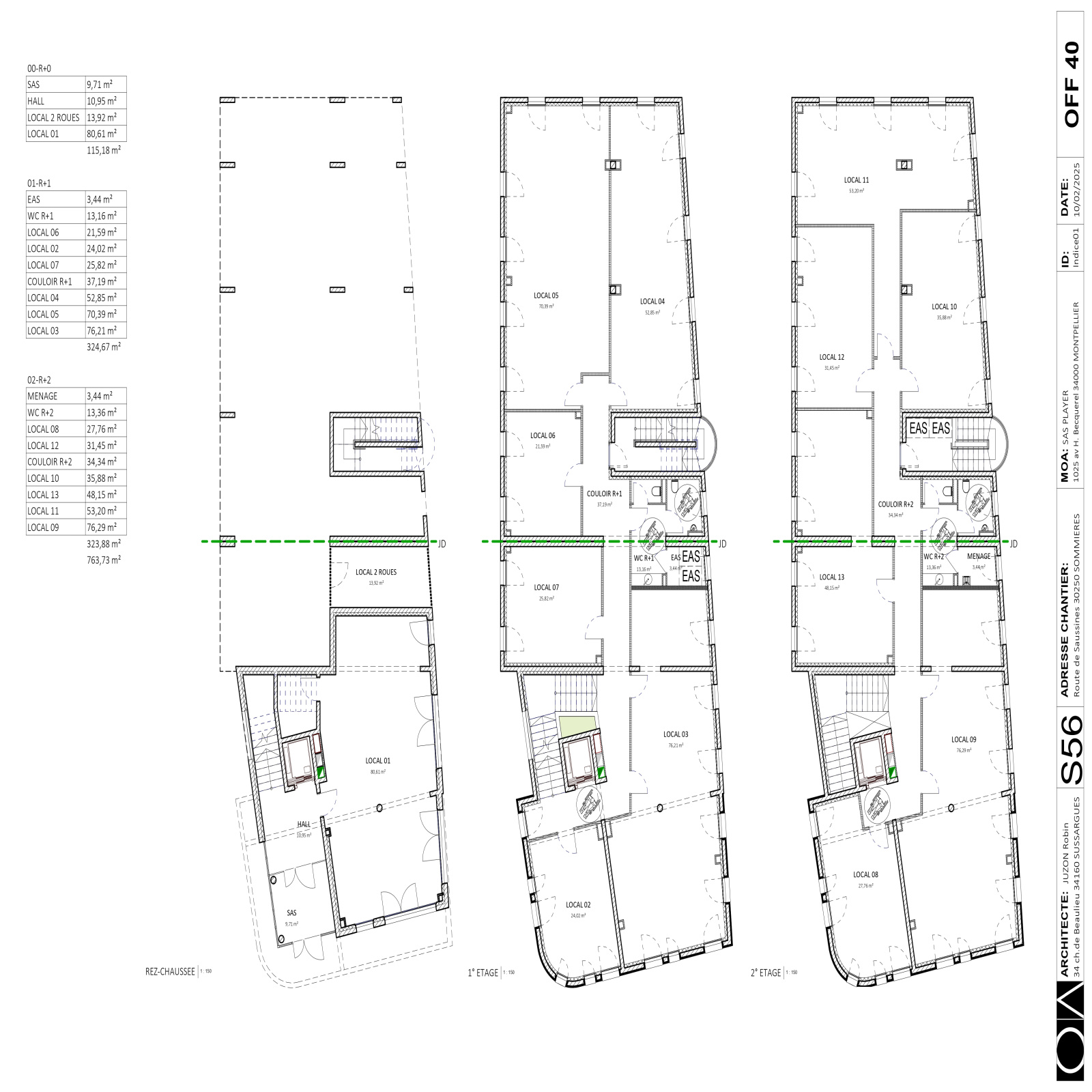 Immeuble neuf en R+2, de 764 m² dont 624 m² de bureaux privatifs , aux dernières normes de construction (RE 2020), prestations de haute qualité. 22 parkings.