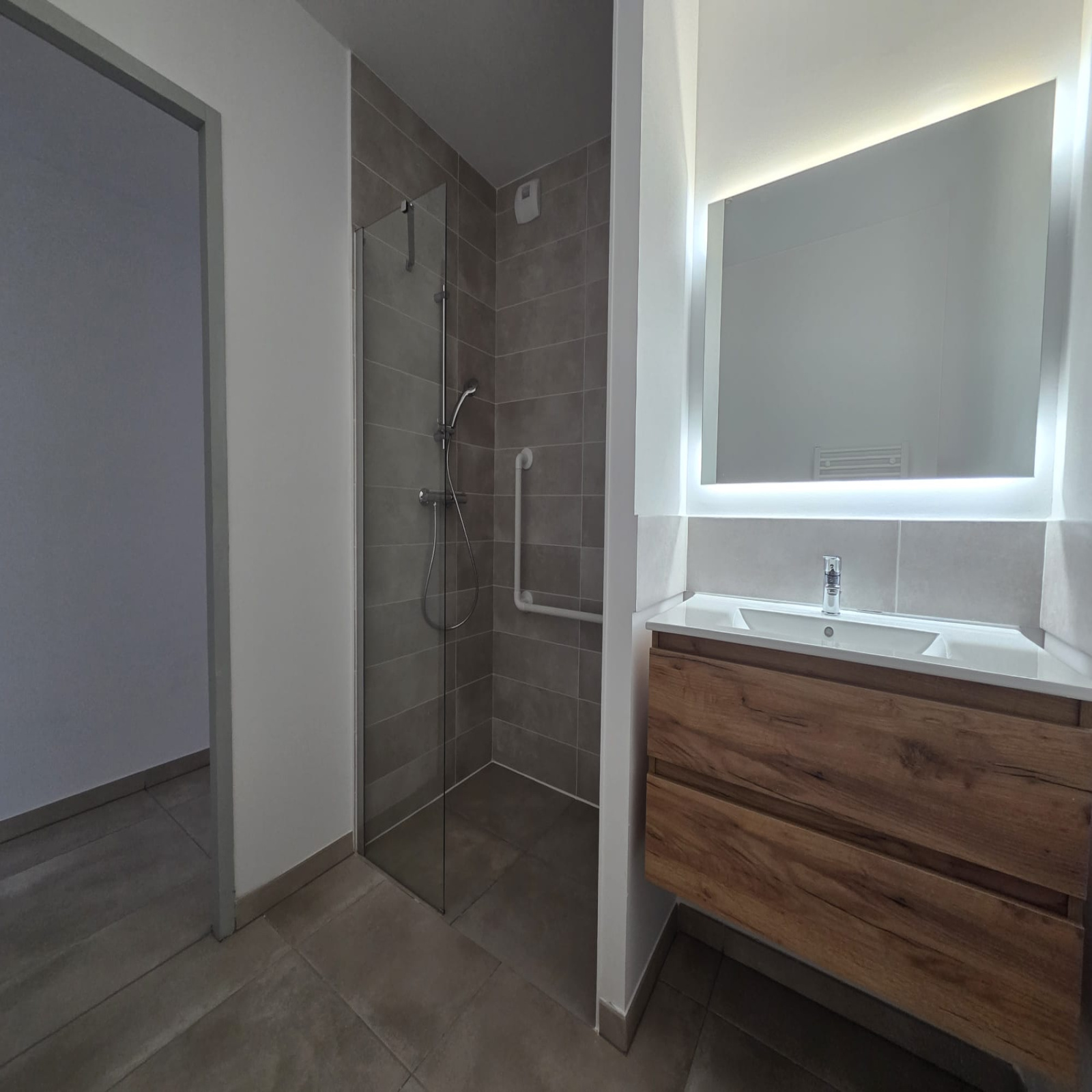 Découvrez un appartement T3 de 62m² avec une terrasse de 13m². Il est composé d'un séjour avec cuisine ouverte et placard, de deux chambres aux normes PMR , une salle de bain avec un wc. Une place de parking incluse.