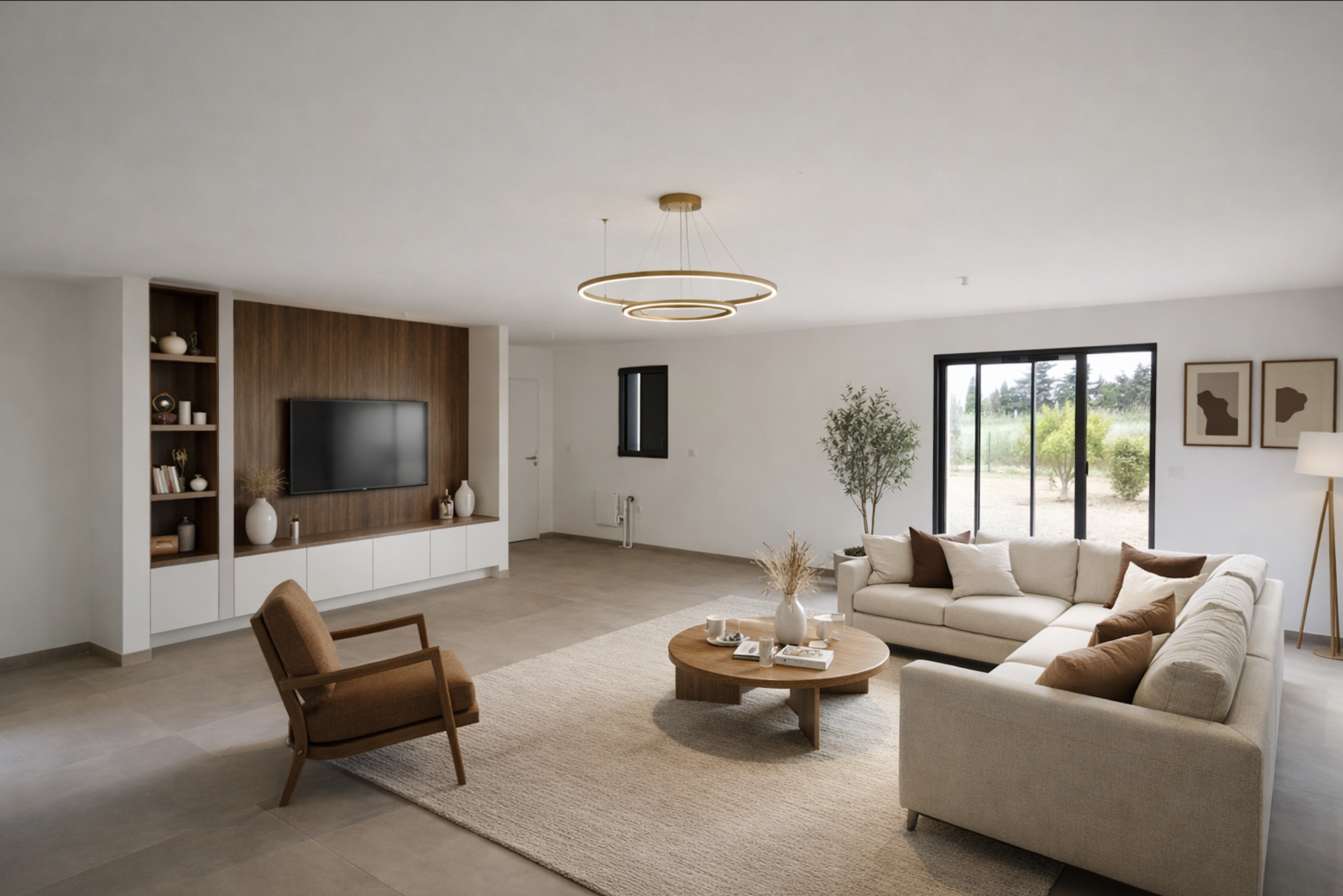 Finitions intérieures personnalisées (revêtements de sol grand format, éclairages ajustés, robinetterie et appareillages haut de gamme),