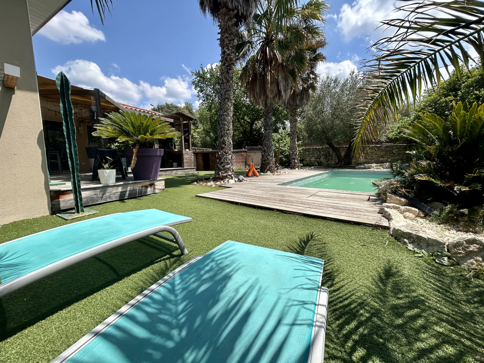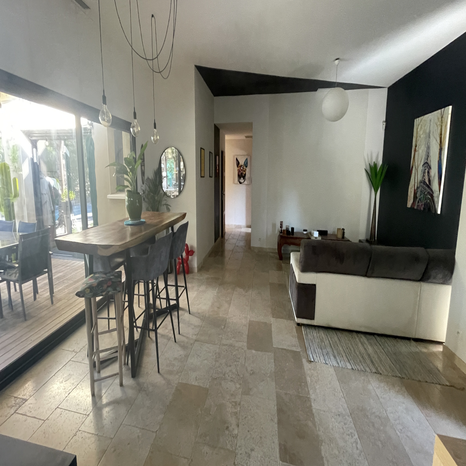 Superbe villa F4 contemporaine offrant 112m2 habitables , sur 590m2 de terrain paysagé, avec piscine. Confort, modernité et esprit vacances au quotidien, aucun travaux à prévoir.